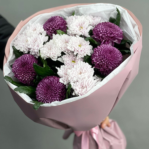 Букет "Всегда говори да" из хризантем Момоко и Балтика