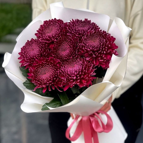 Букет "Винная легенда" из 7 хризантем Бигоуди