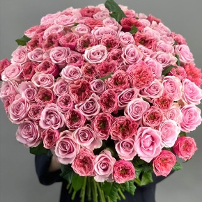 Нежный букет из 101 розы Риджентс парк и Аваланж микс (70 см)
