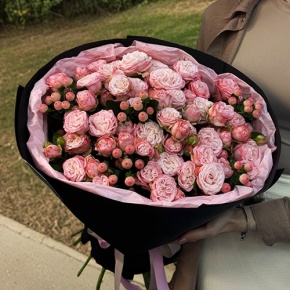 Букет из кустовых роз Бомбастик и гиперикума (50 см)